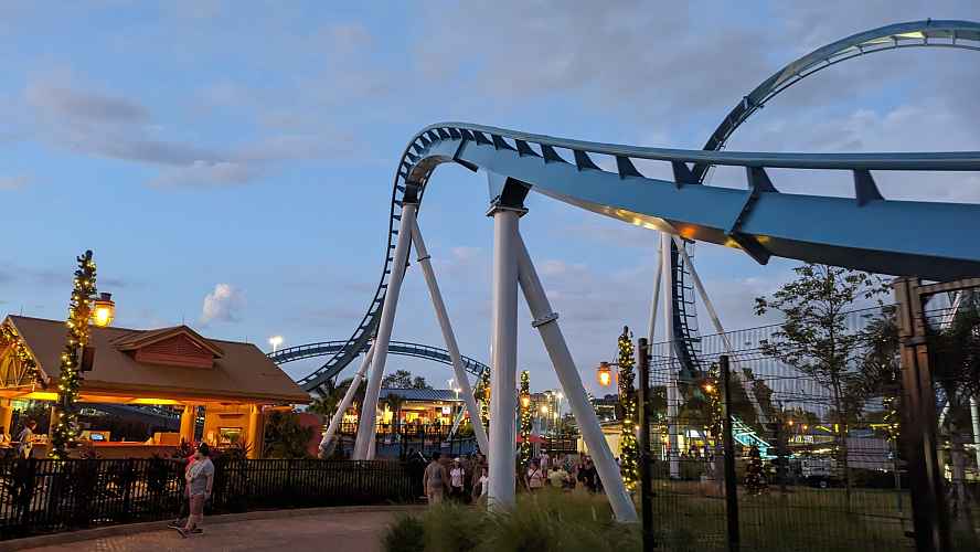 Coming out of the corkscrew is a twisted hill, helix, then another overbanked turn.