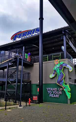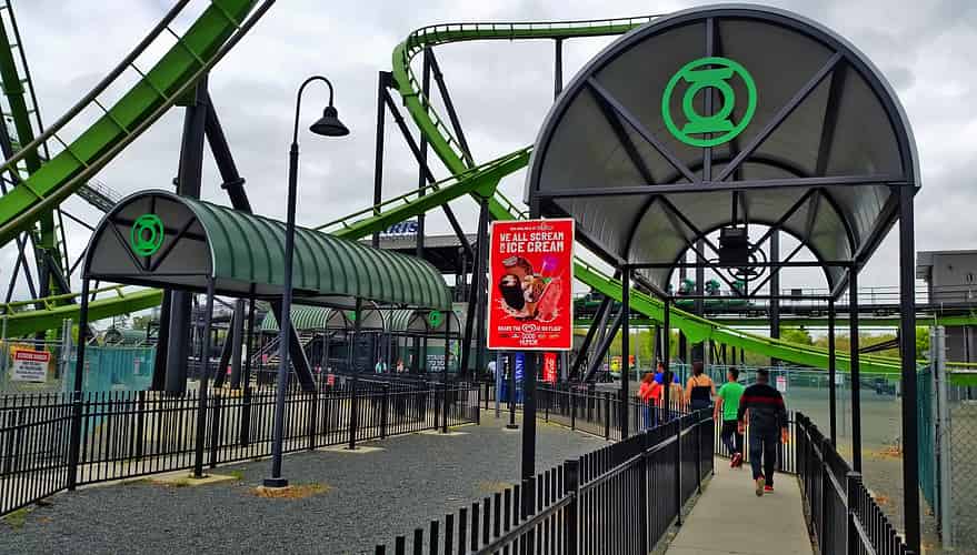 Green Lantern logos on the structures where you pass underneath the track.