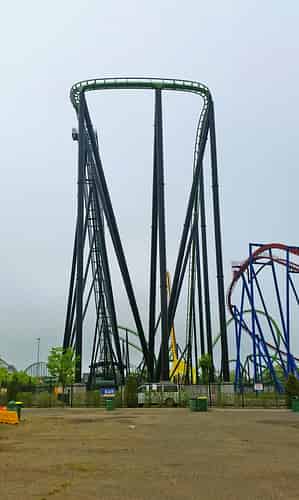 The diving loop leads into a high banked turnaround, and then an inclined loop.