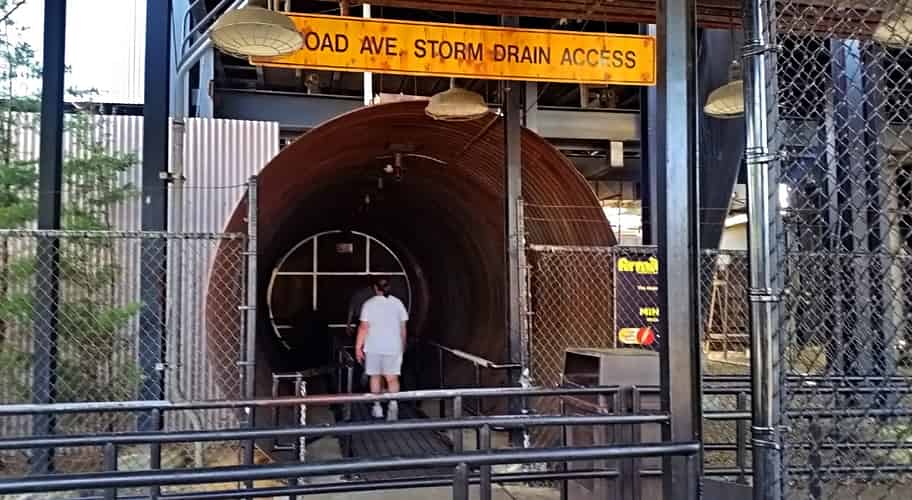 Things become darker as the queue enters the backstreets, and into the Gotham sewer network.