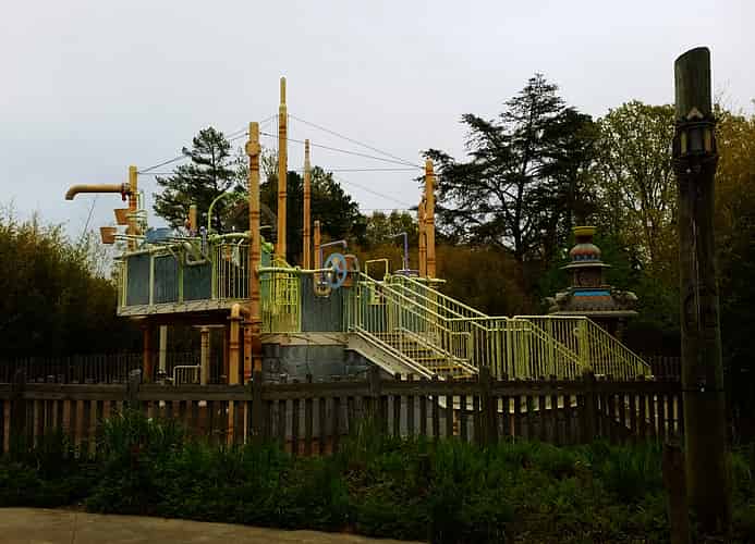 The fortress the coaster runs around holds one of the Skyway stations.