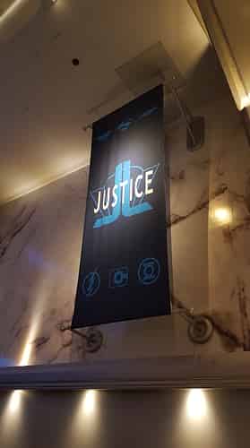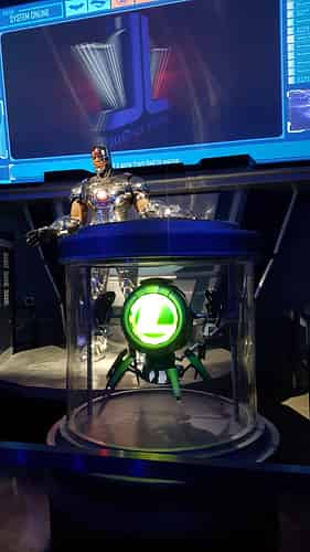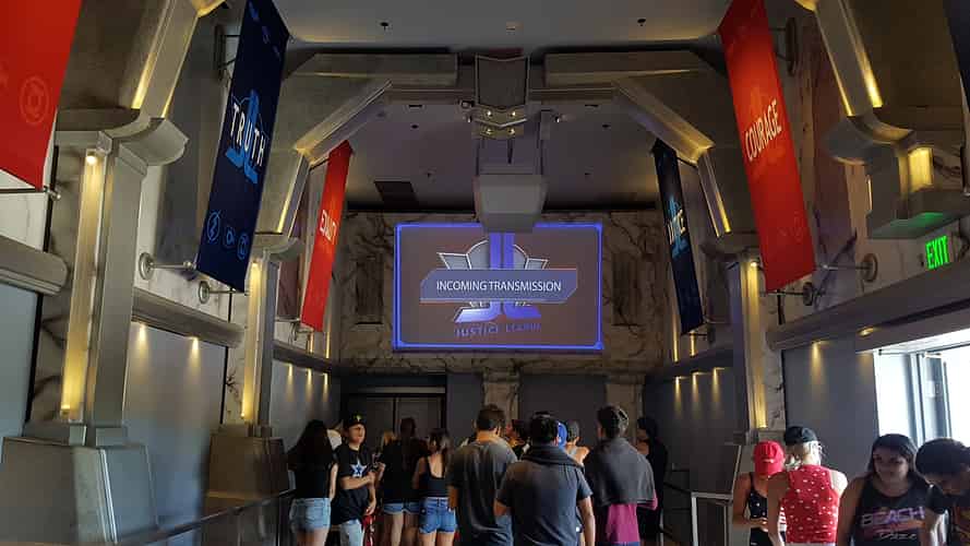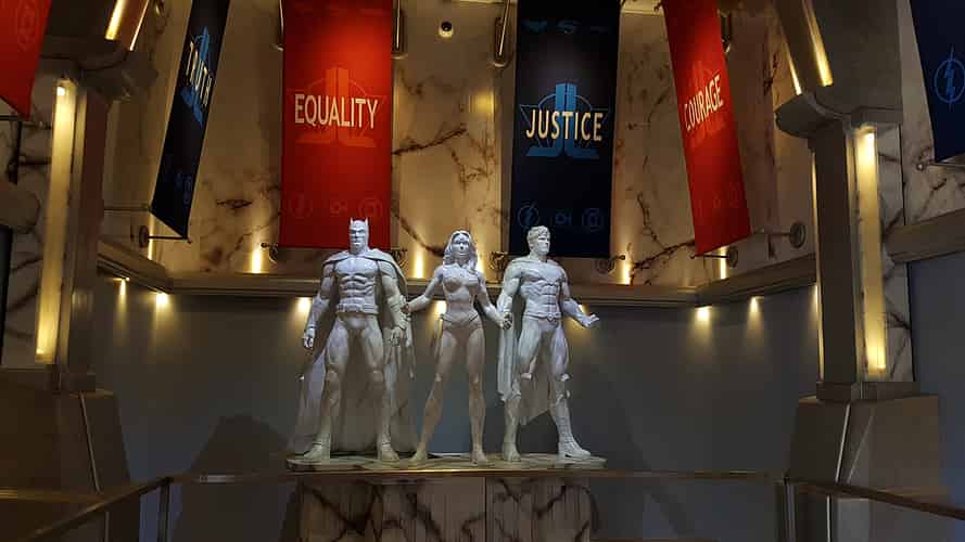 The first room is the foyer of the Hall of Justice, a design first seen on Justice League Alien Invasion 3D at Movie World.