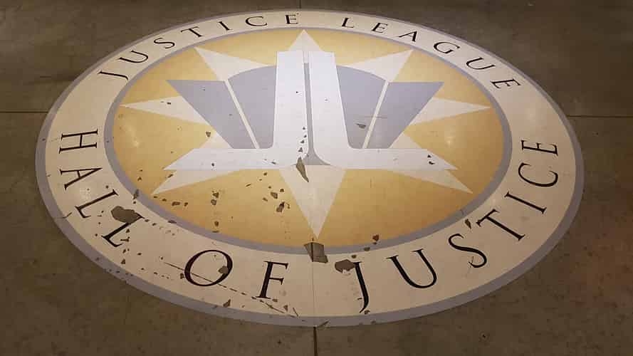 It of course initially takes place in the hall of Justice.