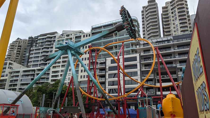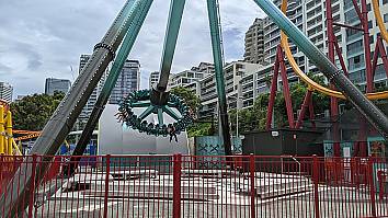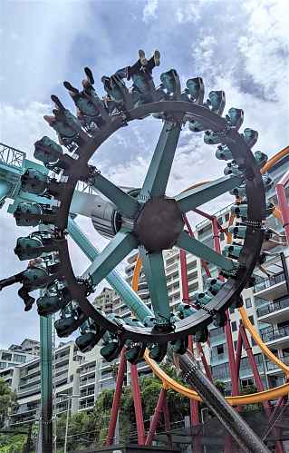 Unlike most rides of this type, it is capable of a full 360 degree revolution, inverting riders, though shortly after opening the park reverted to partial height swinging (Reportedly due to technical issues)