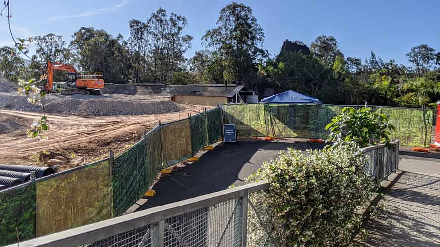 In fact, a new pathway has been laid diverting guests around the worksite, and completely covering the railway tracks, which means no trains for several months at least.