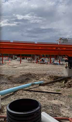 The most interesting development is the first pieces of track being positioned. Buzzsaw is open, so the gaps in the wall slats provide a glimpse of the progress.