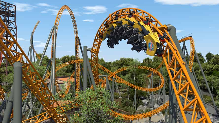 The roller coaster features a standard Blue Fire layout, albeit with a modified launch design.