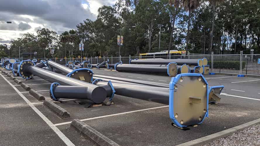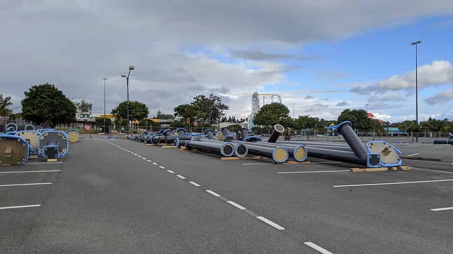 Black columns for the new launch coaster from Mack Rides have been delivered.