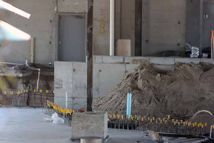The extensive plumbing needs to be put into place before concrete is poured.