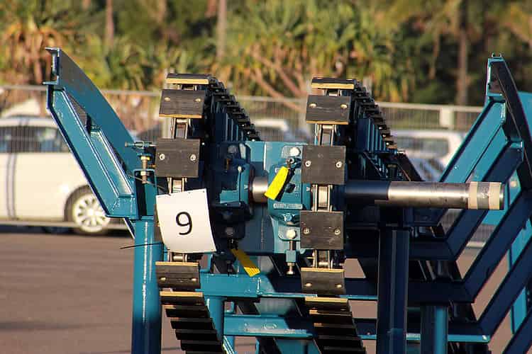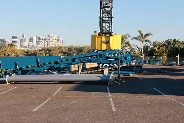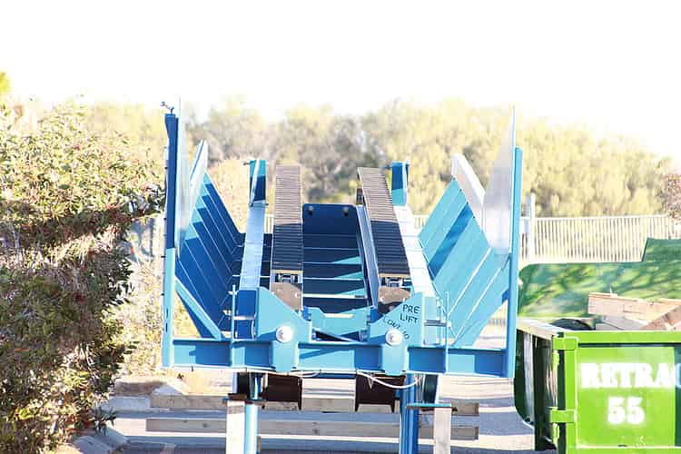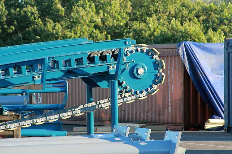 This conveyor belt joins onto the base of the lift and allows boats to be safely spaced. by stopping and starting as needed.