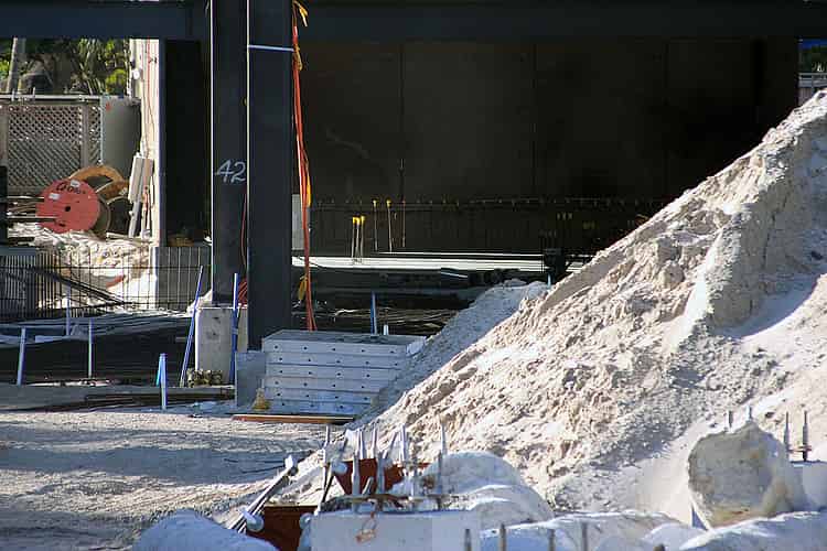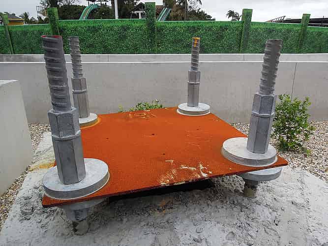 This solid block of concrete will soon support the water coaster's steel structure.