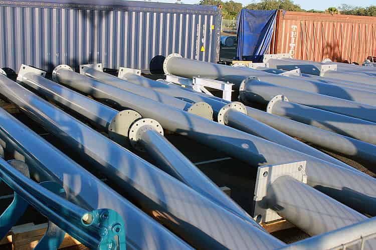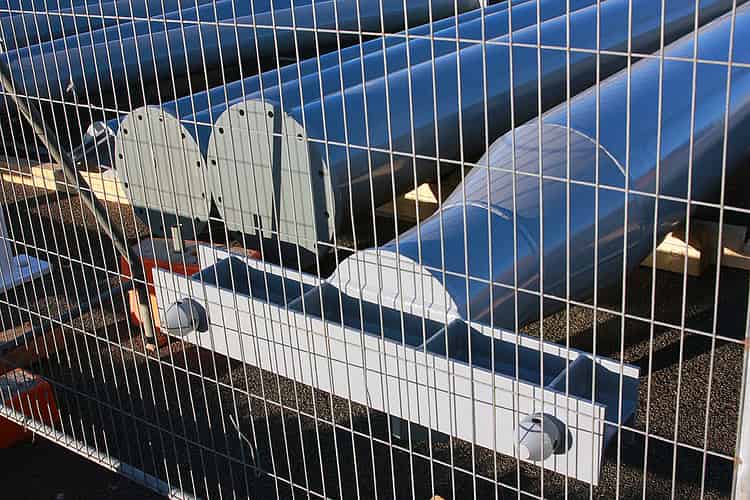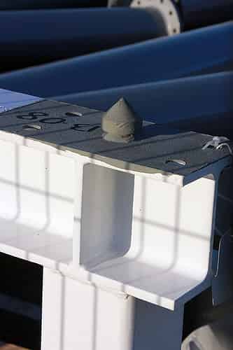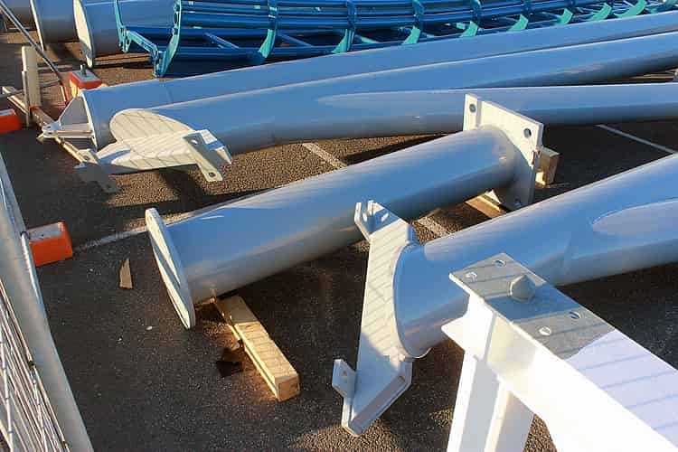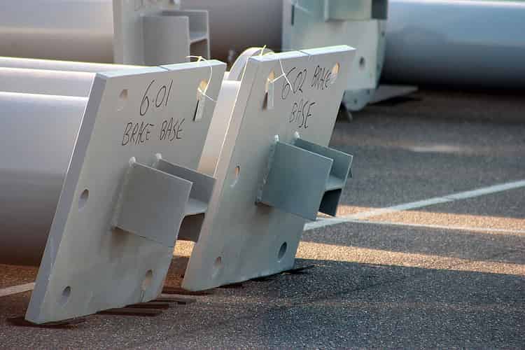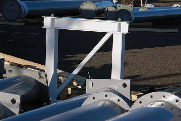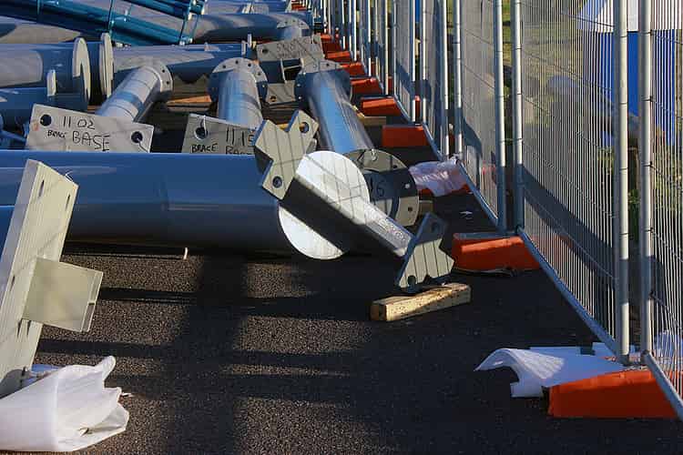 Round plates connect the sections of supports.
