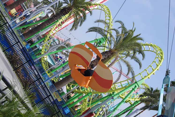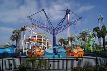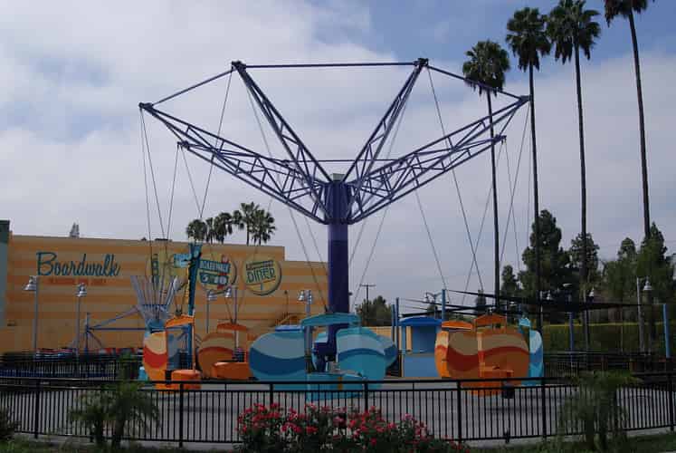 Surfside Gliders is a modern installation of the classic Flying Scooter, a ride which riders control their swing as it spins with a simple rudder in the breeze.