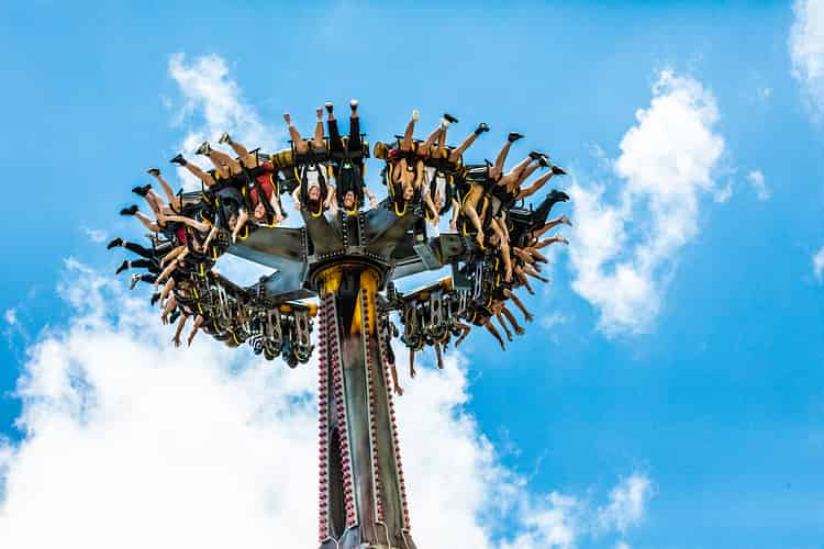 Guests sit in a ring of seats that rotates 360 degrees, whilst the pendulum arm itself also swings through 360 degrees.