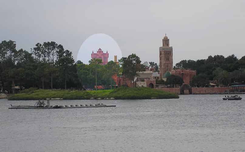 Such is Disney's vision, the distant Tower of Terror was designed to blend in with Epcot's Moroccan section.