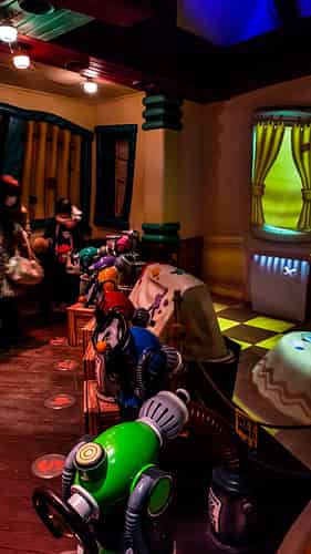 Instructions for use. The attraction uses blasters similar to those seen on toy story mania, with some variation. Your paint guns can either be operated via button, pull cord, or crank.