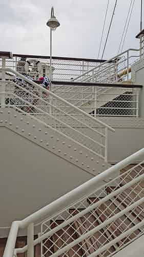 Climbing to the top deck.