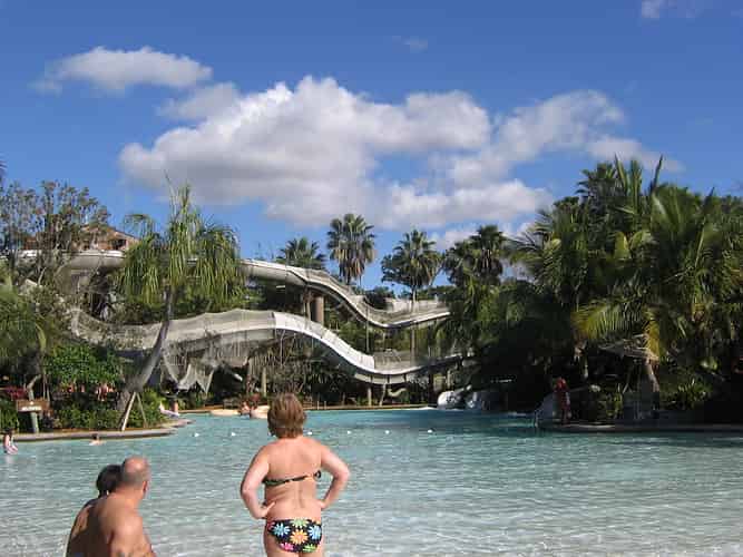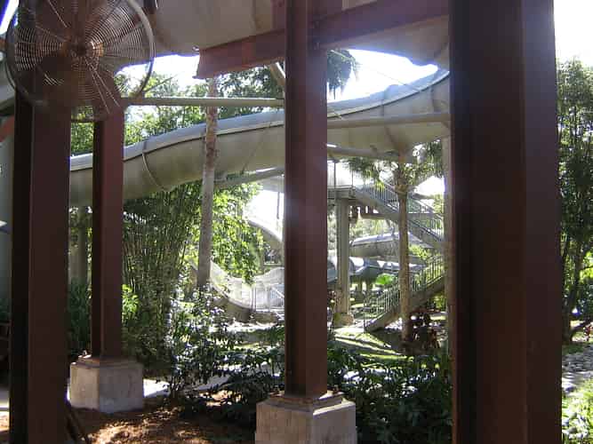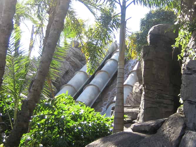 The slides finish in a lagoon, part of which is roped off for general swimming.