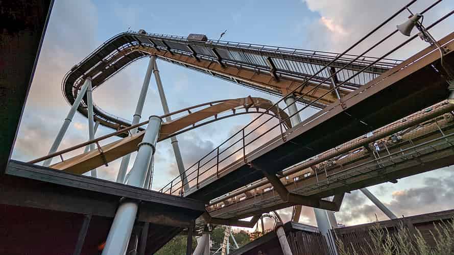 There's a great near miss with the lift hill structure.