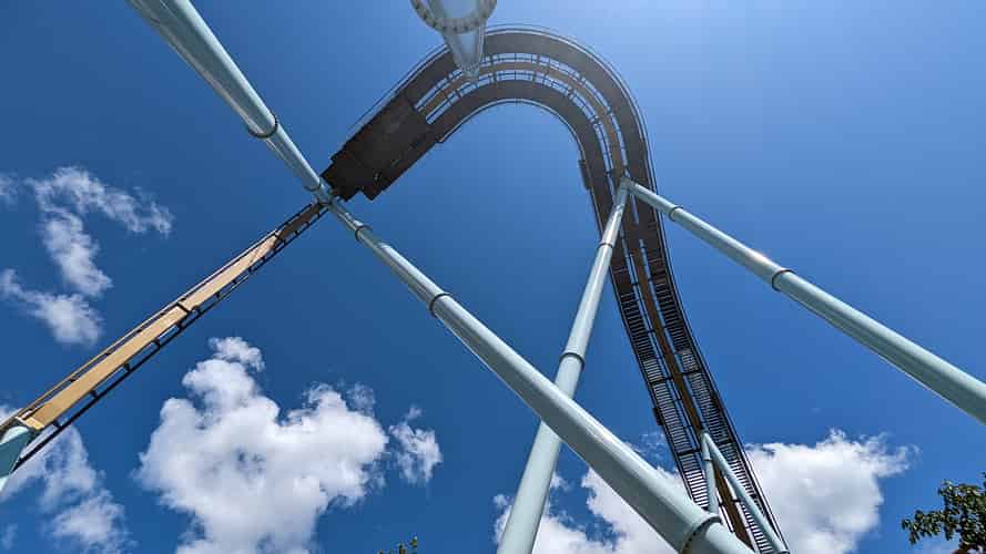 A short tunnel leads into the first inversion, an Immelmann.