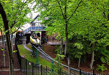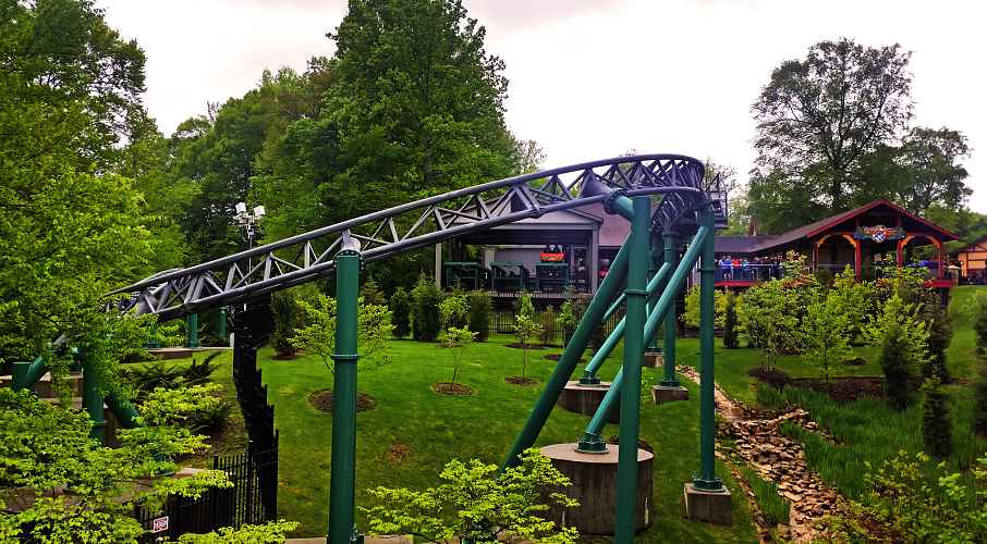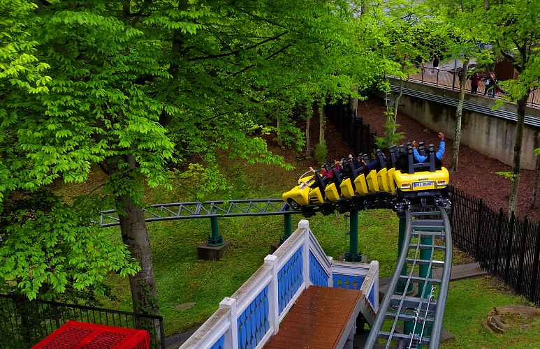 The final part of the ride is some fast turns up onto a rickety wooden bridge, where the train slows to a crawl before dropping off.