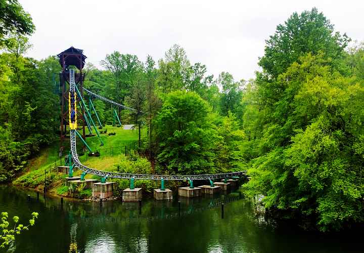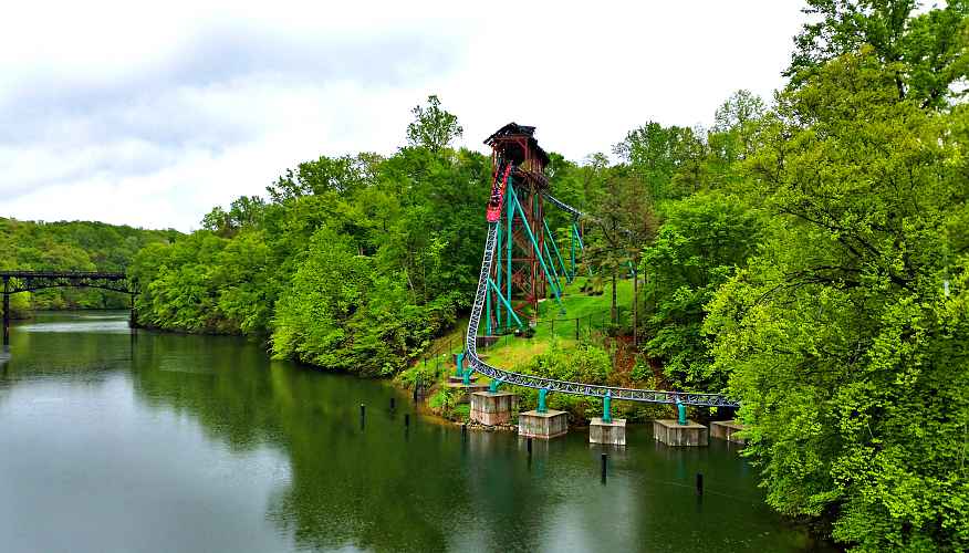 The turn over the river recycled the footings of the "Big Bad Wolf" coaster which previously stood on the site.