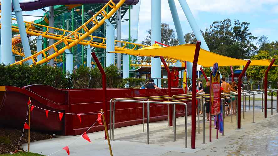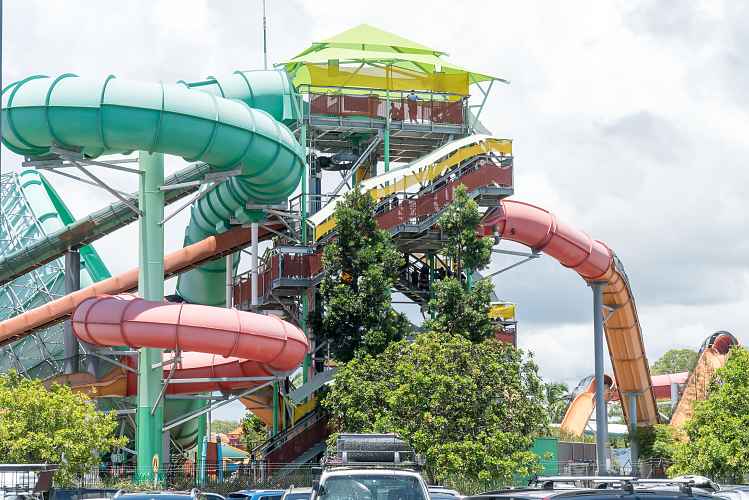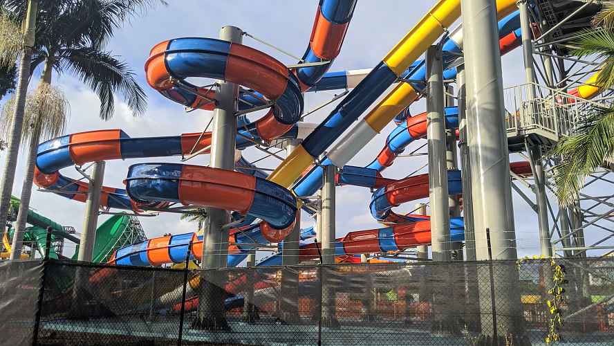 Triple Vortex is the first major slide at WhiteWater World to break from the park's Aussie beach theme.