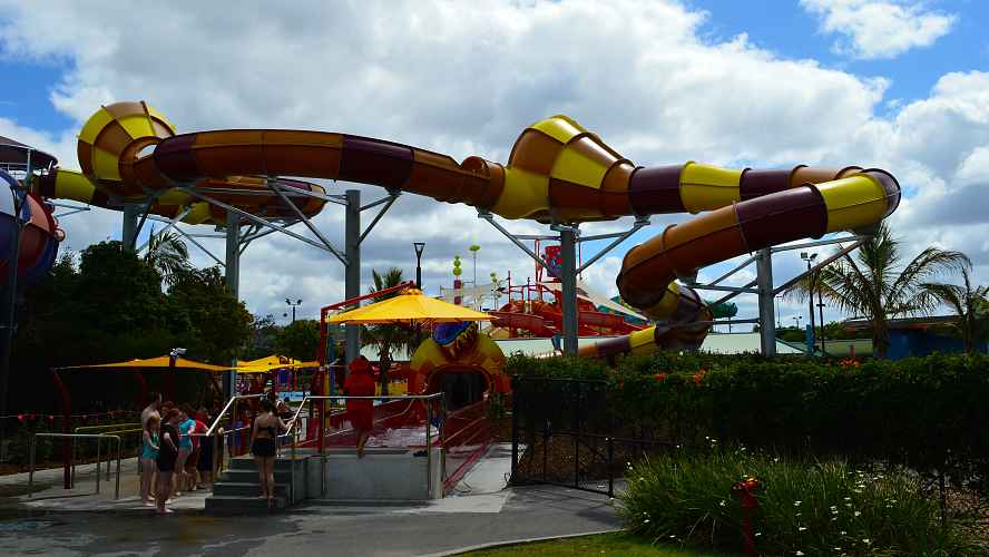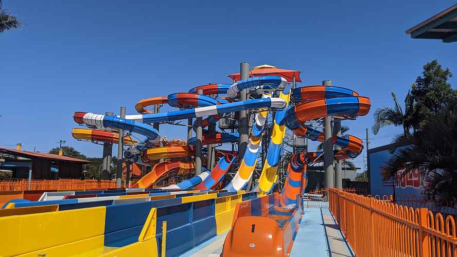 The compact nature of the site means the slides coil tightly around each other.
