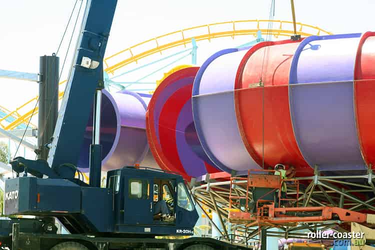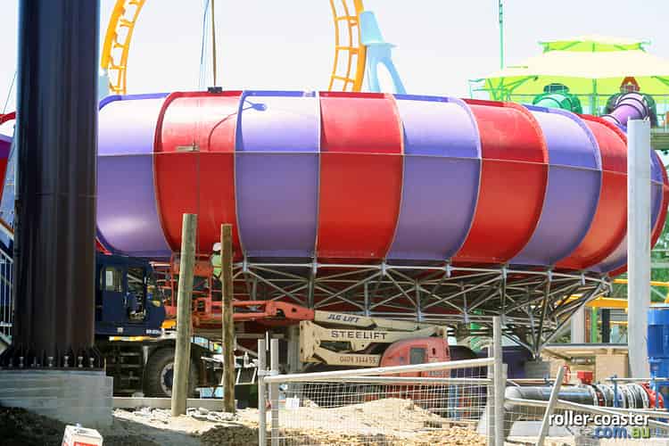 Further slide parts. Unlike Tornado's straight drop, the Behemoth Bowl's drop twists as it does down which creates a very thrilling sensation.
