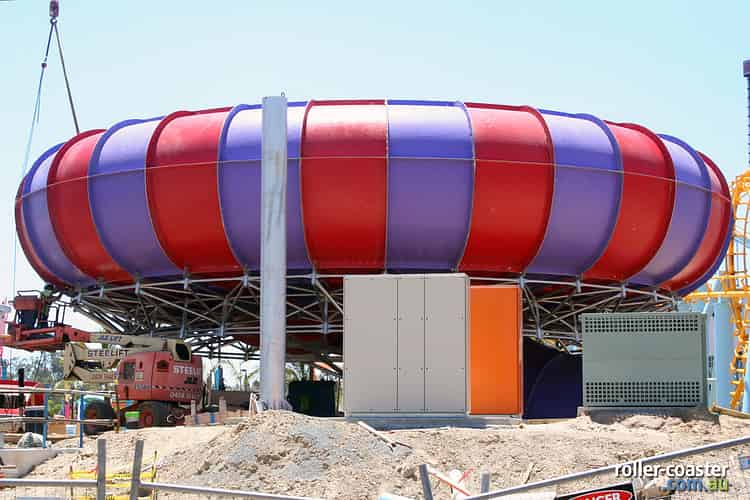 This ride sends four riders at a time in a cloverleaf tube down a large drop into the bowl where they spin around the inside edge several times.