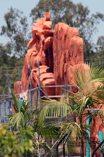 A closeup of the end of the ride. We should see a waterfall over the end of this slide.