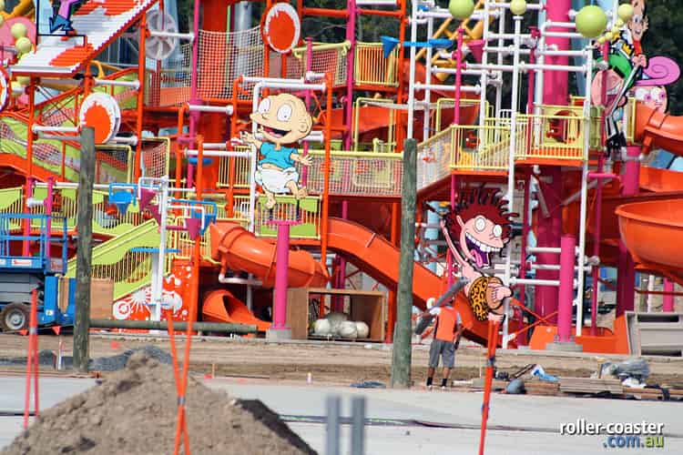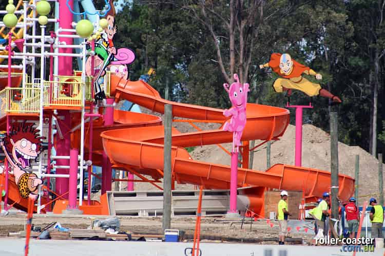 The area is Nickelodeon orange and features many of the popular Nicktoon characters. Universal Studios parks in America have similar Nickelodeon water play areas.