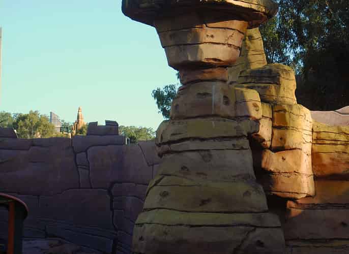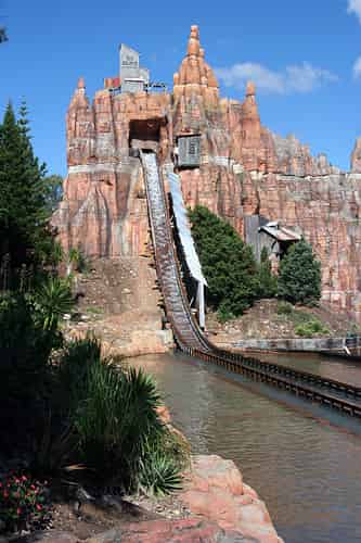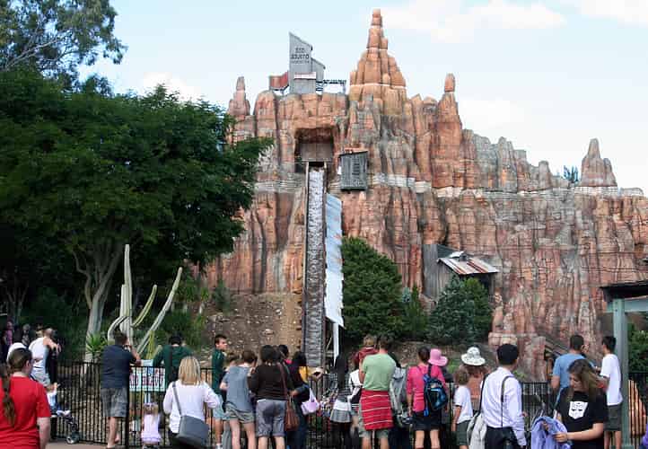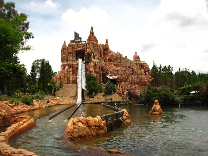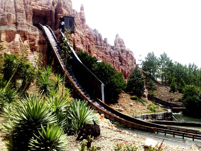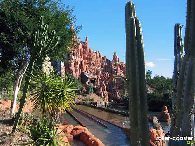 The mountain containing the ride is very Disneyland Big Thunder Railroad-esque.
