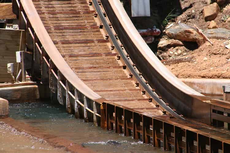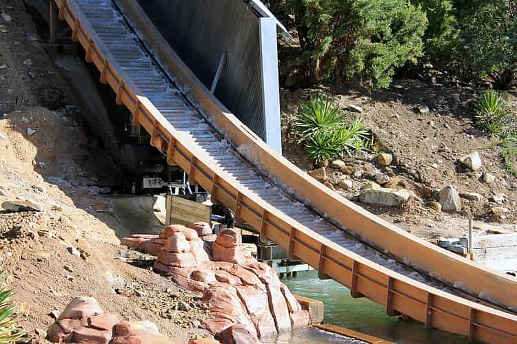 The boats reach a speed of 70km/hr on the final drop, and quickly stop with a surge of water.