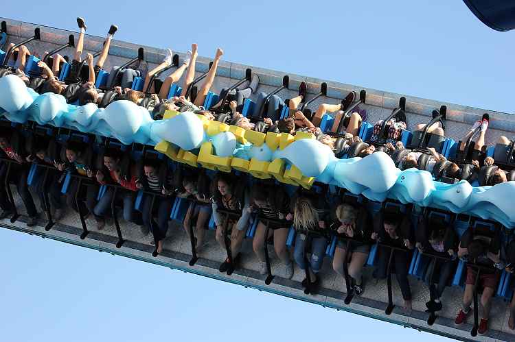 Nothing has changed with the mechanics of the ride; first the shoulder restraints come down, then the lower bar comes in and causes every rider to groan in unison.