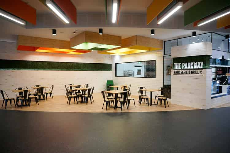 The Parkway... inoffensive like a modern roadhouse. Why a theme park went ahead with this soulless corridor as the park's main exit is anyone's guess.