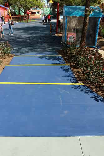 The steps leading down from Shockwave have been painted blue – with yellow trim for visibility.