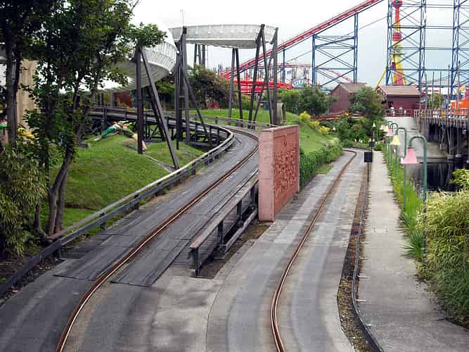 The base of the cable lift hill, found just after the famous "cliff turn" - a fast banked turn, appropriately placed at the very edge of a cliff.