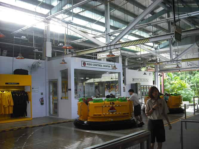 Unlike many rapids rides, which have the boats floating in the water to load, this one has you strolling onto a slowly moving aluminium conveyer belt.