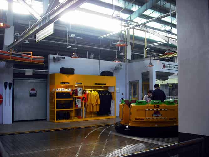 A tilting and spinning ride vehicle takes you through scenes filled with special effects, as well as past 3D screens with targets to shoot.