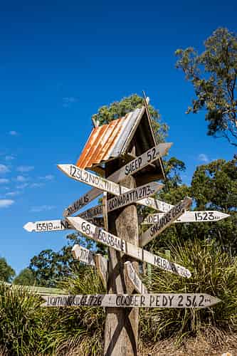 The final turn before crossing the finish line. The roadside billboards along the footpath recreate the famous Burma-Shave advertisements that were a staple of American highways from the 1920s to 1960s.