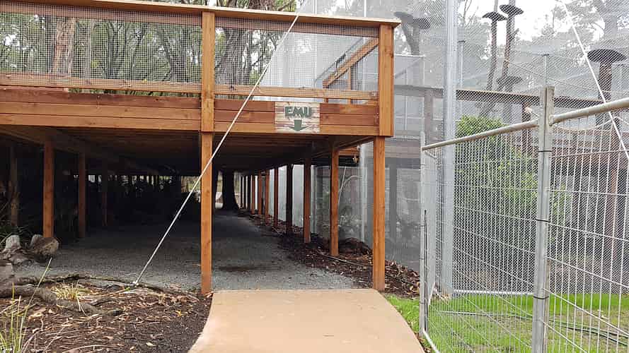 Underneath the aviary is a walkway through a fernery to the emu pen.