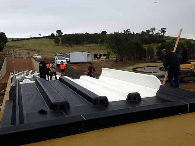 Late October saw the slide pieces start to arrive from Proslide. Piece by piece the 4-lane racer was constructed, starting with the large racing lane sections.
