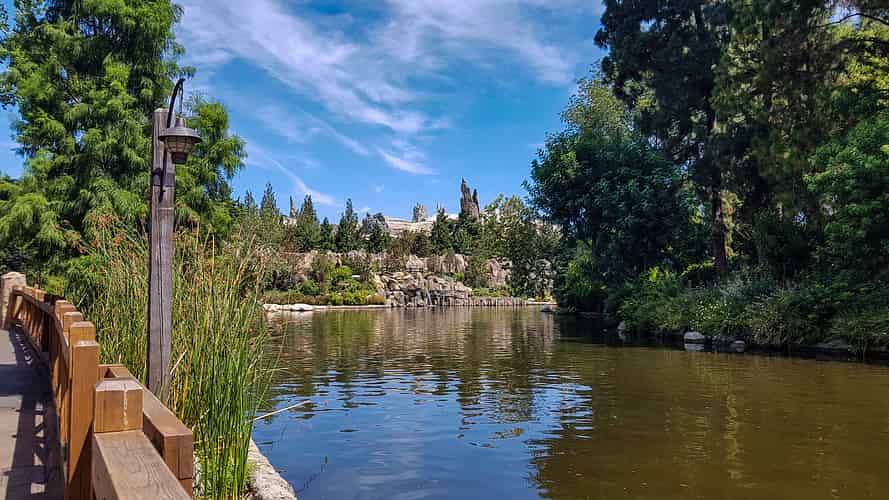 The area is well hidden, and the parts that are visible are made to blend in with the wilderness landscape around the Rivers of America.