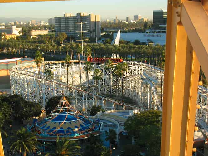Overlooking paradise pier, with King Triton's Carousel and California Screamin'.