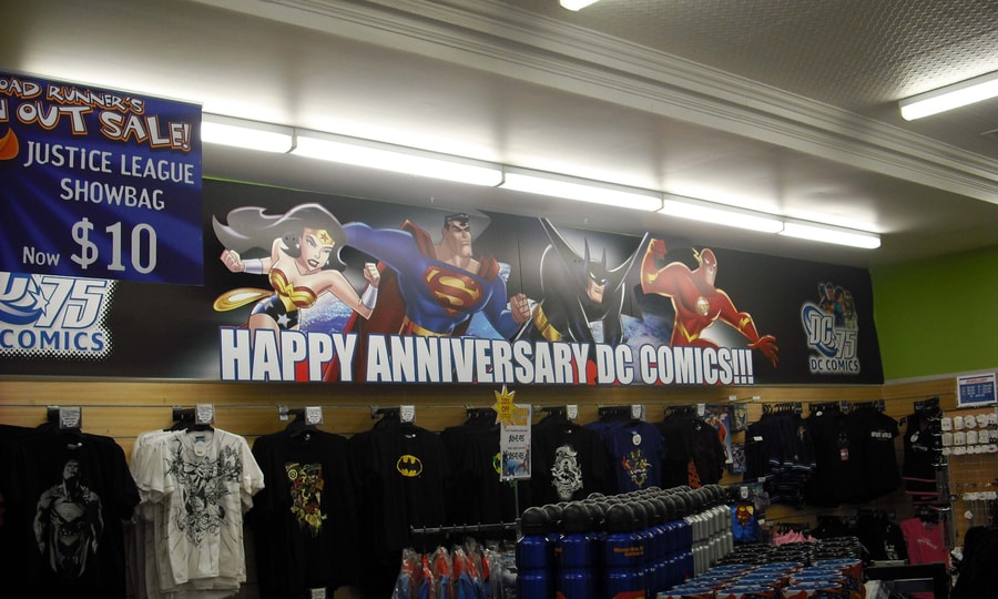 We were a couple of days early for the DC Comics 75th anniversary celebrations, but the banners were up for it.