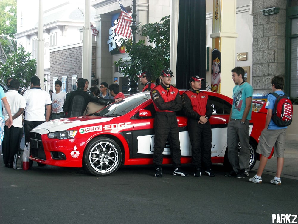 The Hollywood Stunt Driver team out on the street for a meet 'n' greet with park guests.