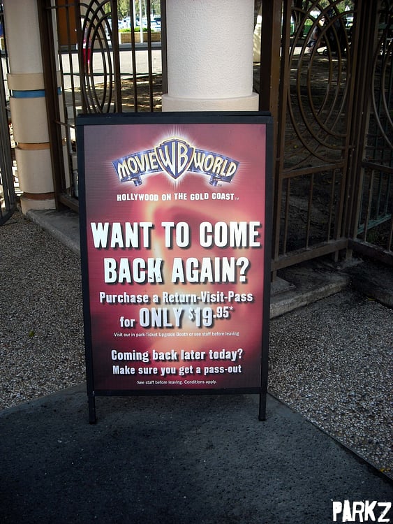 On the way out we spotted this offer. Not quite as good as Dreamworld's perennial $10 return pass.