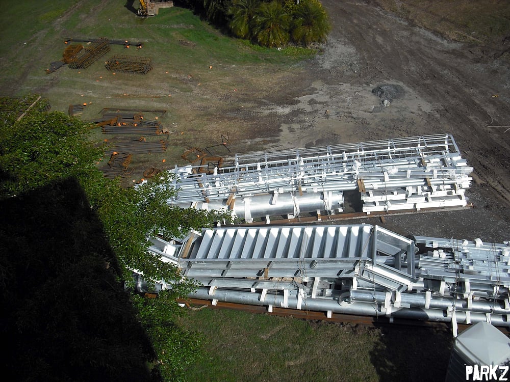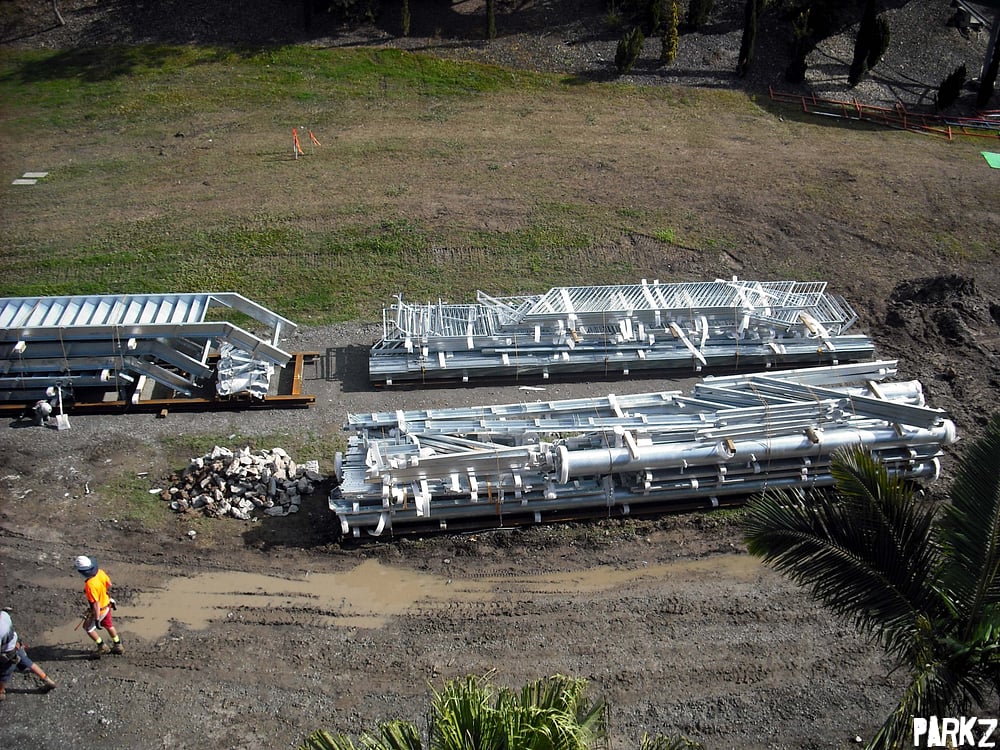 Supports, reinforcing, escape ladders, and stairs have been delivered for the new attraction. No slide segments yet though.