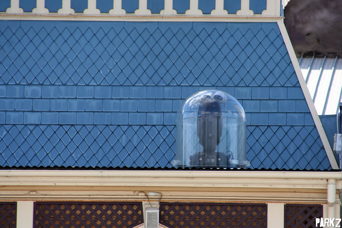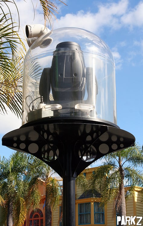 Weatherproof domes cover permanent lights placed on buildings around Dreamworld.